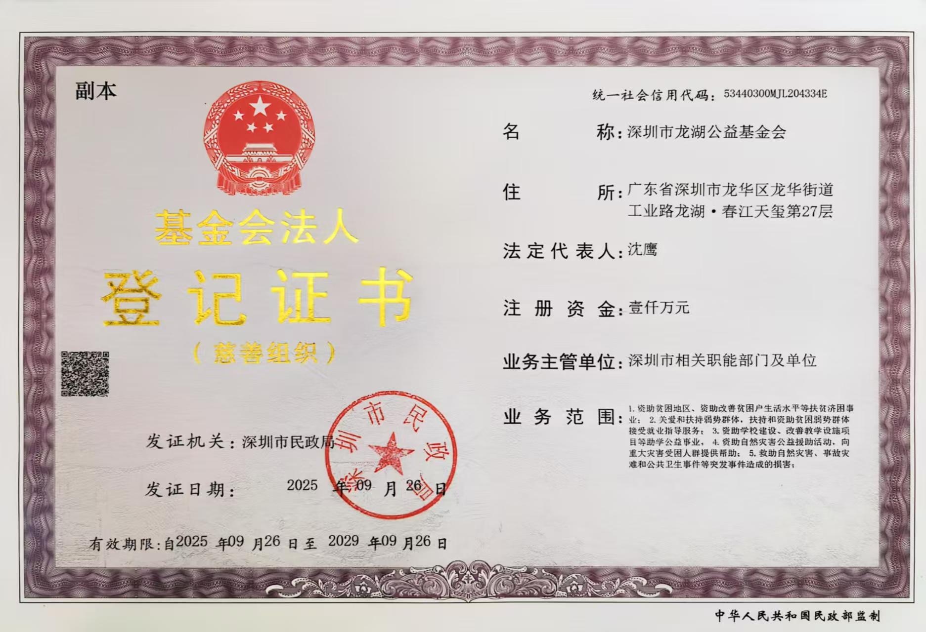 基金会法人登记证书
